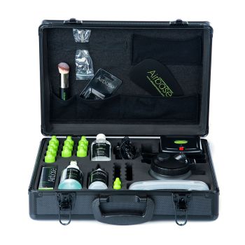 Provides you with everything you need to maximise your airbrush experience and more! Includes a make-up case, cleaning pot, hanger, first aid kit and ultrasonic cleaner.